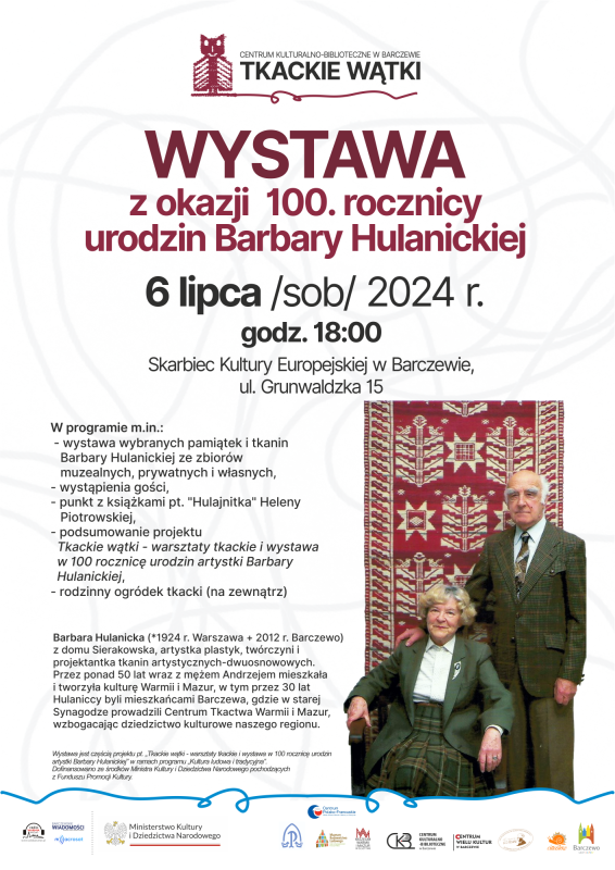 Wystawa jest częścią projektu pt. „Tkackie wątki – warsztaty tkackie i wystawa w 100 rocznicę urodzin artystki Barbary Hulanickiej” w ramach programu „Kultura ludowa i tradycyjna”.