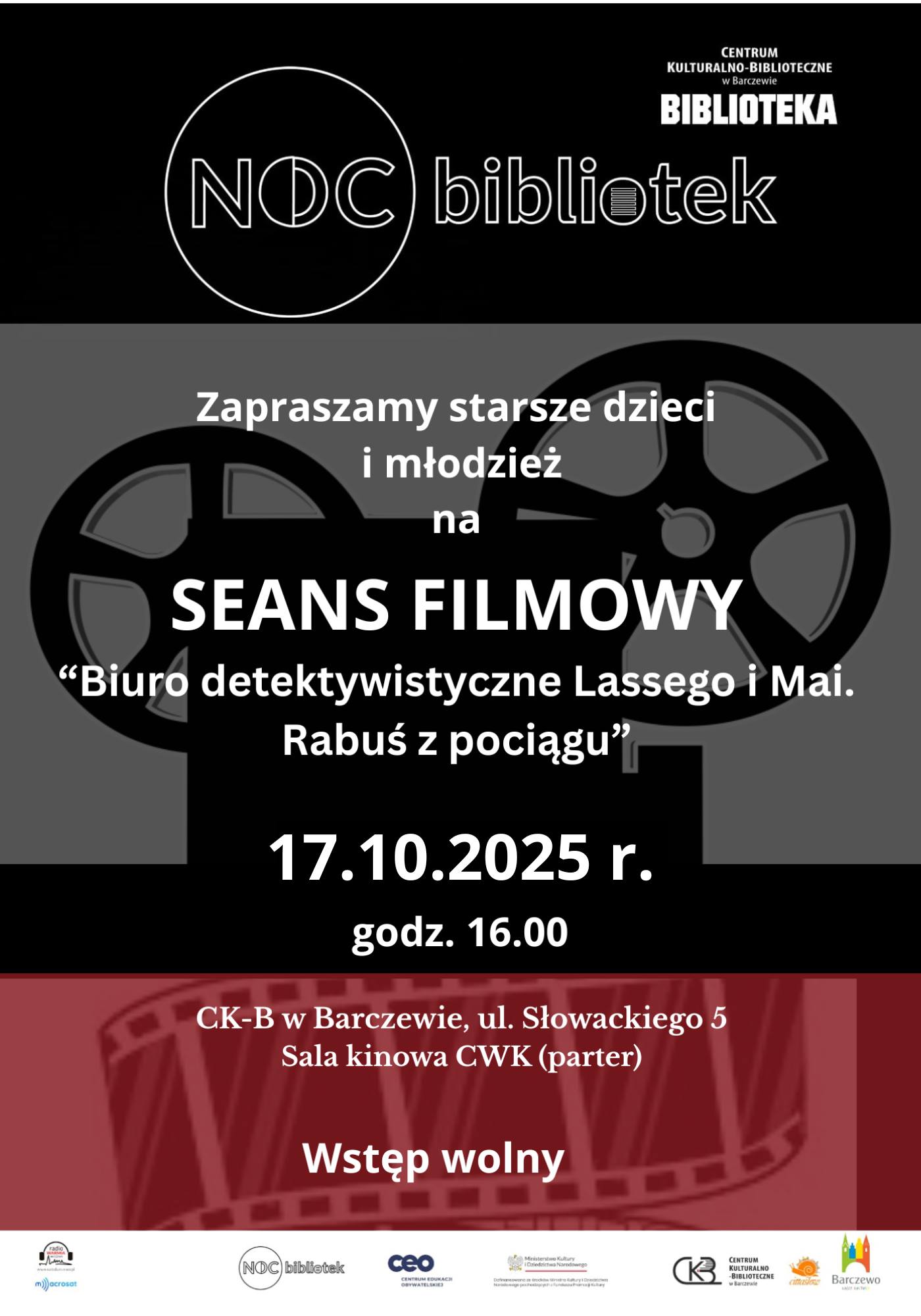 Zapraszamy również wszystkie dzieci i młodzież na wyjątkowy seans filmowy w ramach ogólnopolskiej akcji Noc Bibliotek 2025.