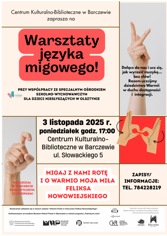 Zapraszamy na warsztaty w ramach realizowanego projektu „Historia Polski w twórczości Feliksa Nowowiejskiego” dofinansowanego ze środków Muzeum Historii Polski w Warszawie w ramach programu „Patriotyzm jutra”.