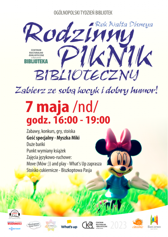 Centrum Kulturalno-Biblioteczne w Barczewie zaprasza na Rodzinny Piknik Biblioteczny – Rok Walta Disneya w ramach Ogólnopolskiego Tygodnia Bibliotek.